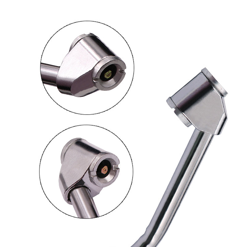 DUBBELE LUCHTKOP - Beschikt over een veelzijdig ontwerp met dubbele kop, waardoor aansluiting op bandventielen vanuit verschillende hoeken eenvoudig is. Dit maakt het uiterst handig om ventielen van diverse voertuigtypen te bereiken.