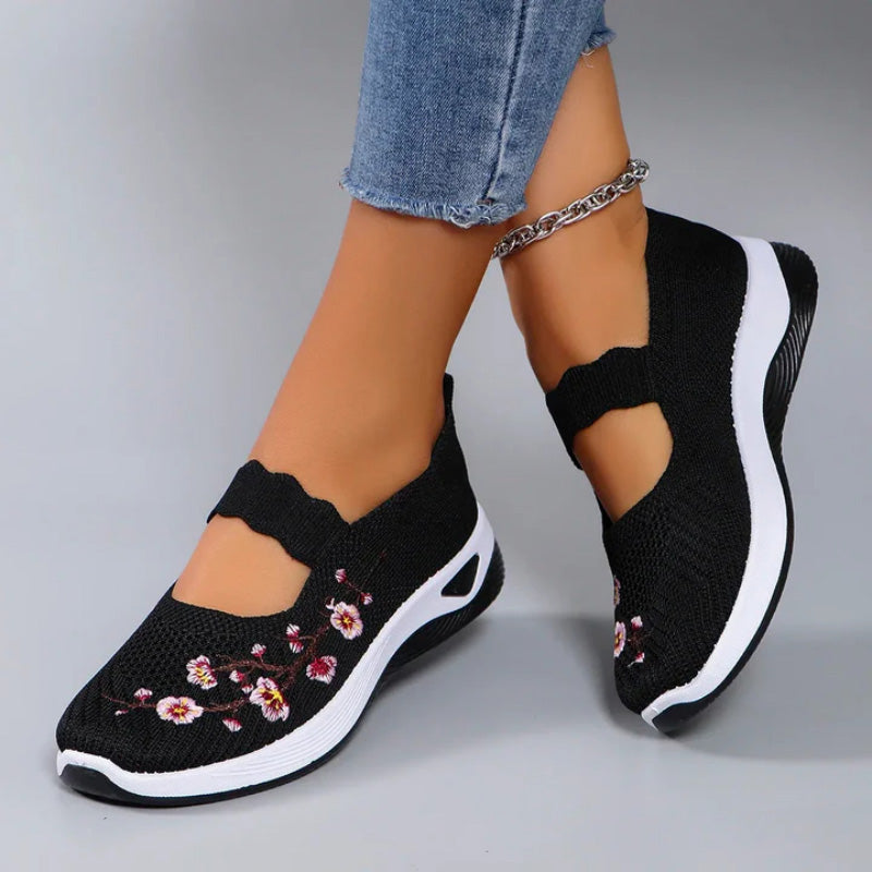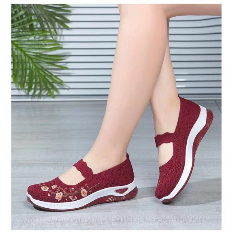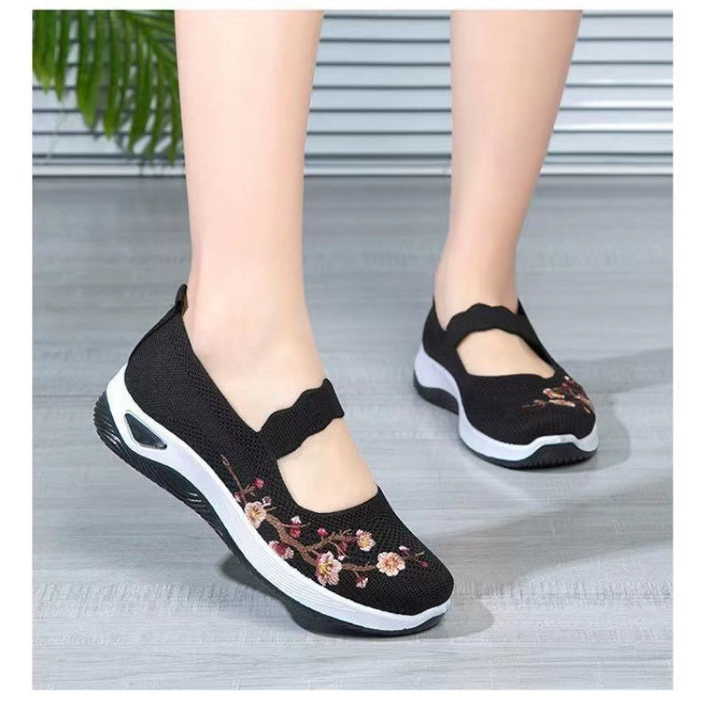 BLOEMENBORDUURSEL : Elk paar is voorzien van een gedetailleerd geborduurd bloemenpatroon op het bovenwerk, een combinatie van traditioneel vakmanschap en modern comfort. Dit detail voegt een vleugje elegantie en culturele charme toe aan je dagelijkse look.