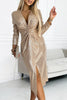 🎅Kerstuitverkoop 50% KORTING🎁Dames V-hals geplooide avondjurk met pailletten en split voor een elegante uitstraling