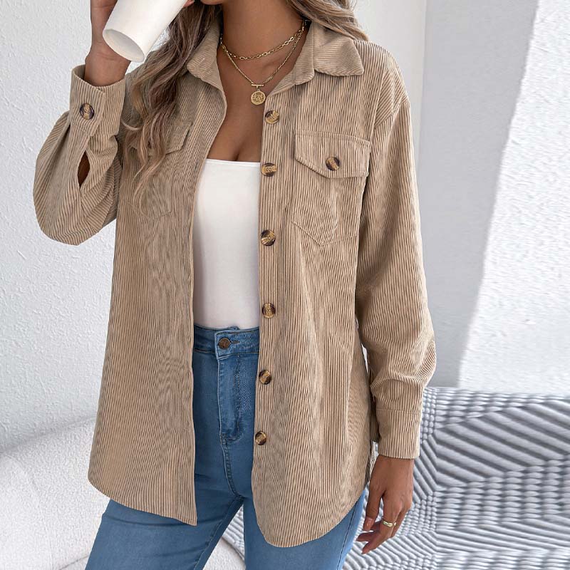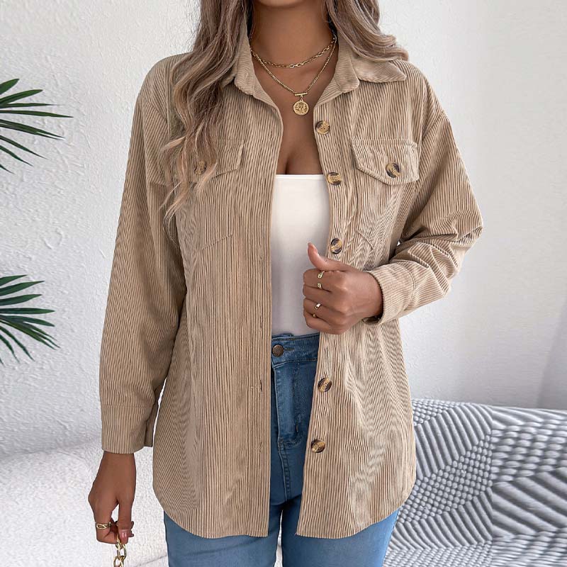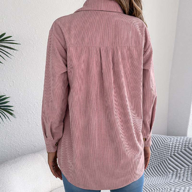 CORDUROY - Dit overhemd is gemaakt van zacht corduroymateriaal, wat zorgt voor een comfortabel en gestructureerd gevoel dat geschikt is voor verschillende seizoenen. Het geribbelde oppervlak geeft het kledingstuk visuele diepte.