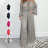 1 * Vrouwelijke Tweedelige Off-Shoulder Top en Wijde Broek Set