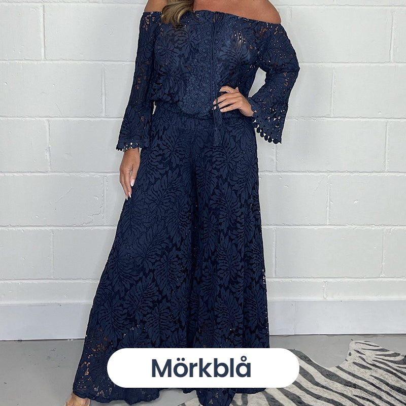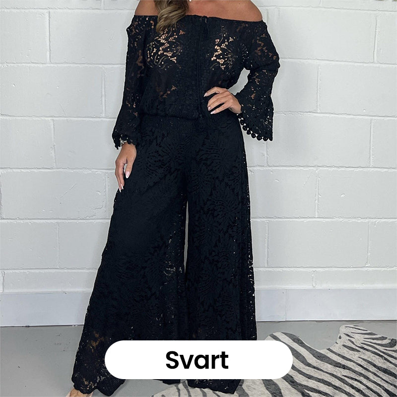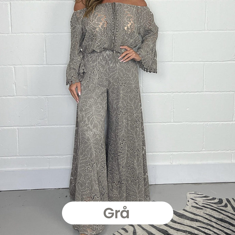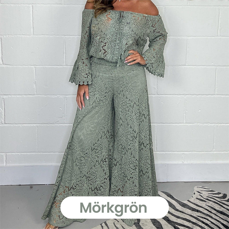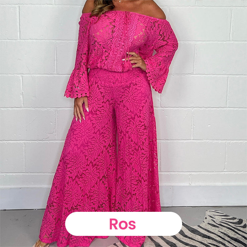 ⏰ Tijdelijke aanbieding 🎉Tweedelige damesset: kanten top + broek met wijde pijpen