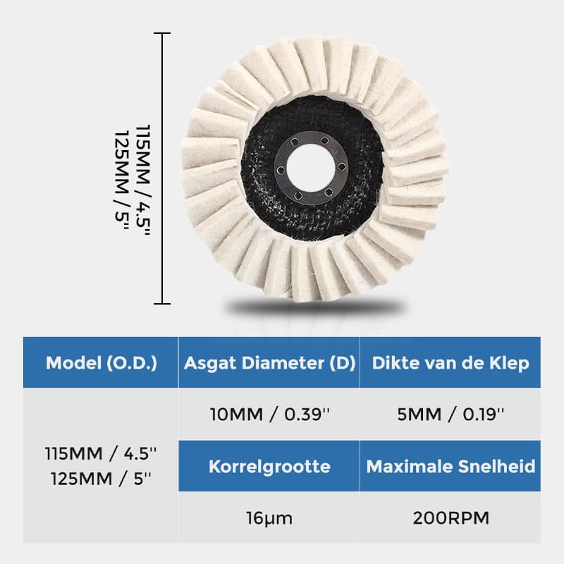 🔥 Vilten polijstschijf met klep – Professionele glans in seconden, nu tijdelijk 50% korting