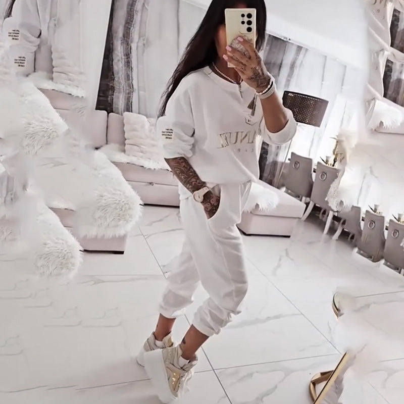 STIJLVOL ONTWERP - Deze set met lange mouwen top en broek voor dames heeft een relaxte pasvorm en een flatterende snit. Dankzij het bijpassende ontwerp creëer je eenvoudig een chique, nonchalante look, perfect voor verschillende gelegenheden en lichaamstypes.