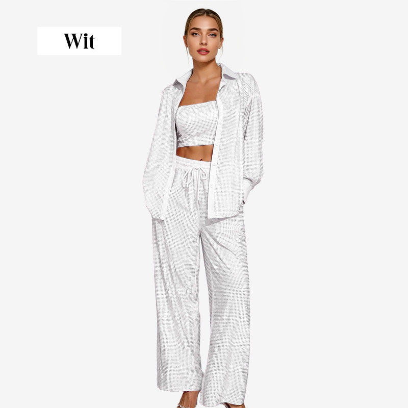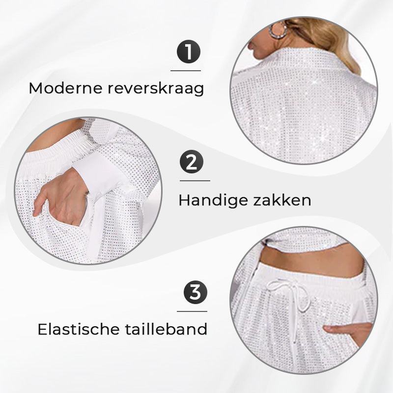💕2025 HETE VERKOOP💐Paillettenblazer en wijde broek voor dames (set van 3 stuks)