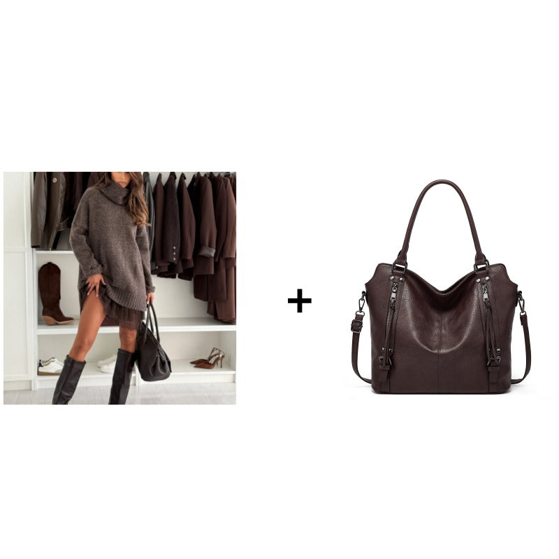 ❄️💃 Winteruitverkoop 50% Korting! Hoge Kraag Trui & Mini-Jurk Set – Uniek Gelaagd Ontwerp, Comfortabel Stof & Inclusieve Maten(Winter Must-Have!)