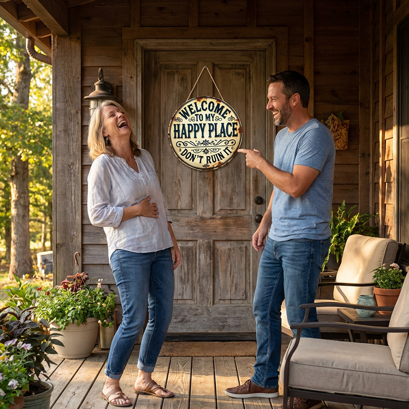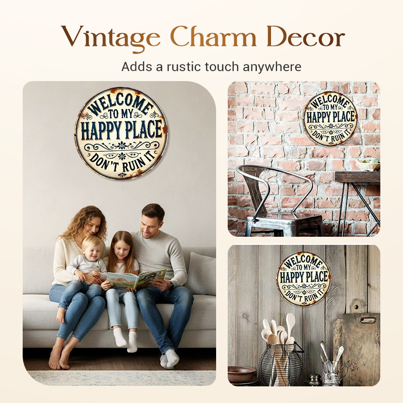 Pakketinhoud: 1 * Vintage metalen bord met de tekst "Happy Place"