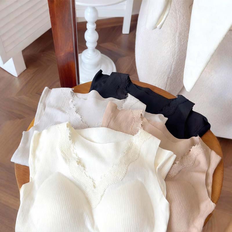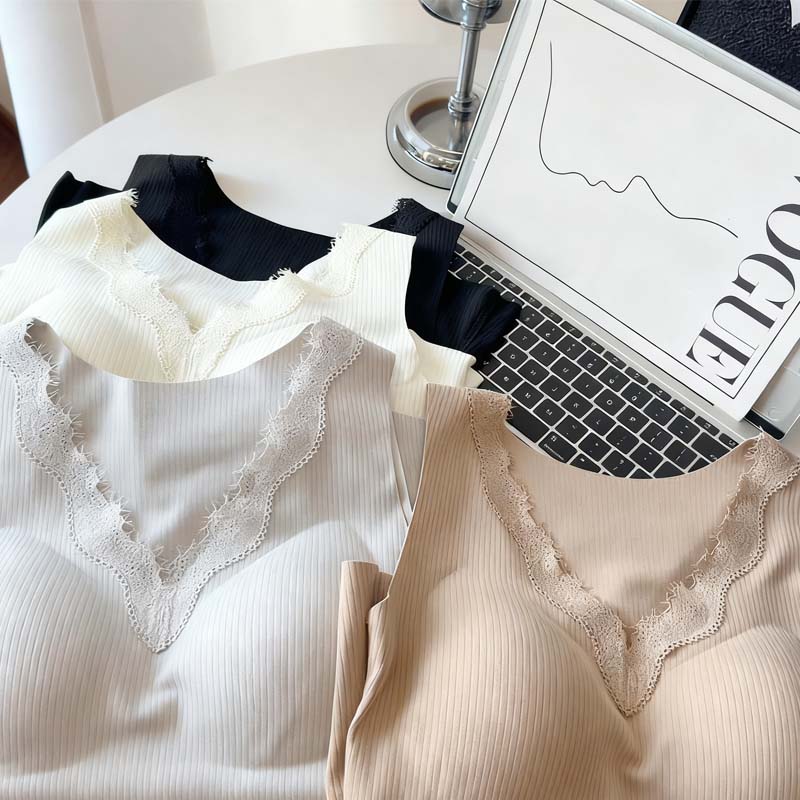 VEELZIJDIG V-HALSONTWERP - Met een elegante V-halslijn, afgewerkt met delicate kanten details, biedt deze onderlaag zowel stijl als veelzijdigheid. Het klassieke ontwerp maakt naadloze gelaagdheid mogelijk onder een breed scala aan bovenkleding, van blouses tot truien, zonder volume te creëren. De flatterende snit zorgt ervoor dat de onderlaag discreet blijft of bewust kan worden gepresenteerd als een subtiel, chic detail, waardoor de veelzijdigheid van je garderobe wordt vergroot.