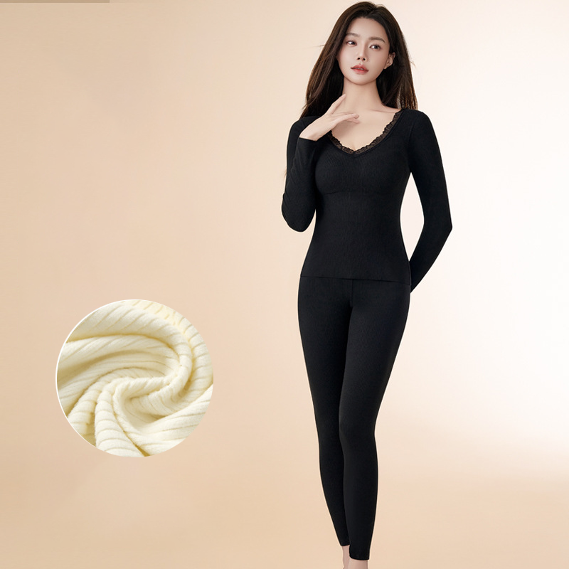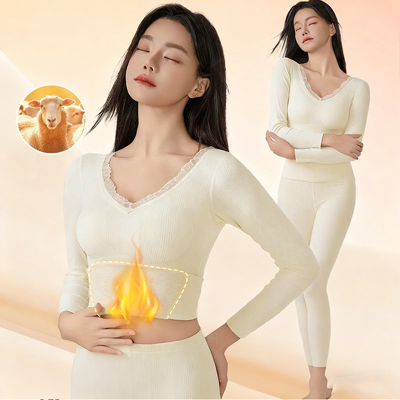 Thermische ondergoedset met V-hals en kant voor dames