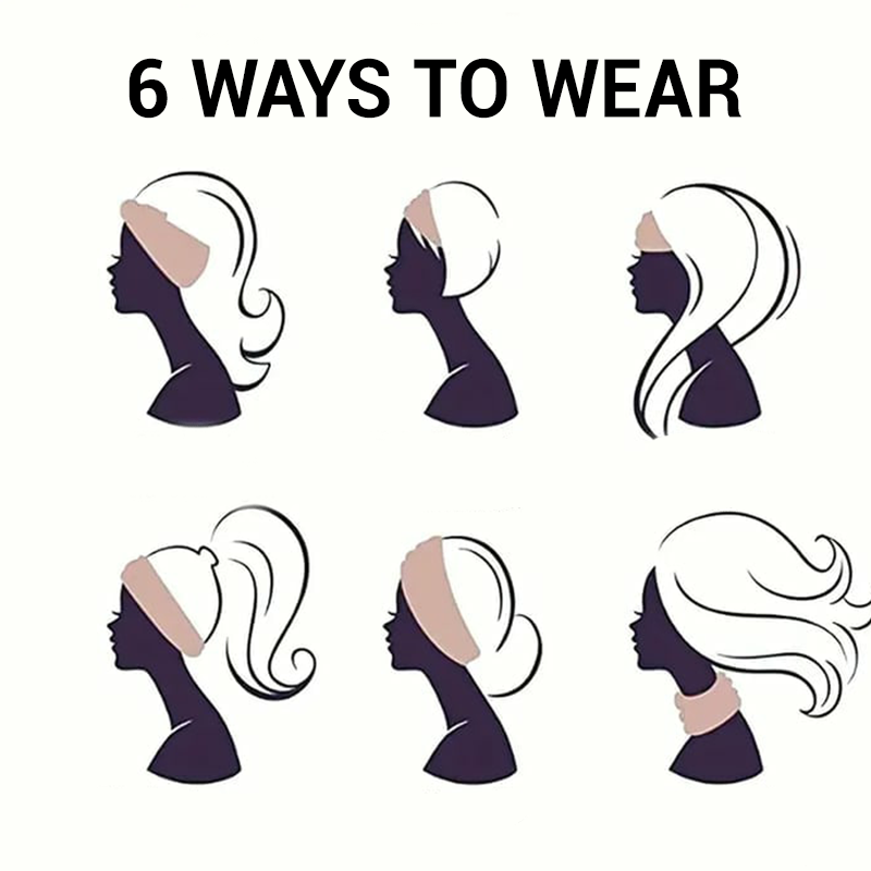 Deze veelzijdige hoofdband kan op 6 manieren worden gedragen: als zweetband op het voorhoofd, hippie-stijl horizontaal, als paardenstaart-wrap en meer – perfect voor modieuze variatie.