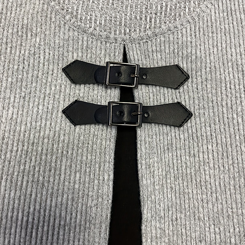 CHIC GESPACCENTEN - Unieke gespen van imitatieleer voegen een vleugje moderne verfijning en visuele interesse toe. Ze dienen als een stijlvol middelpunt en tillen de jurk van een eenvoudig basisstuk naar een statement piece.