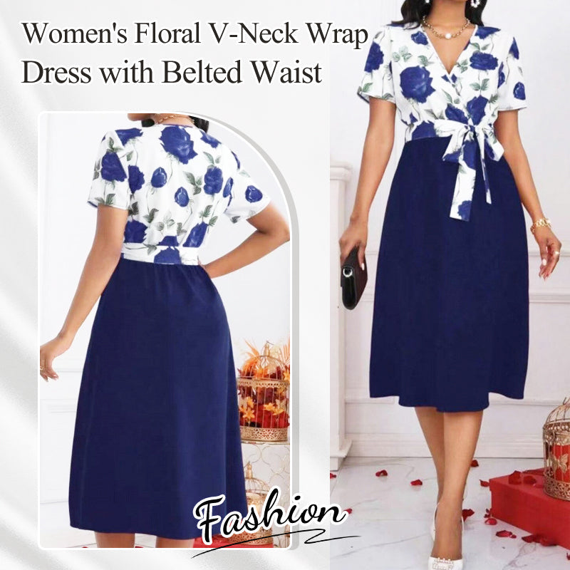 Package Includes:1*Women's Floral V-Neck Wrap Dress with Belted Waist