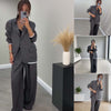 Pakket bevat: 1*Dames Lange Mouw Blazer & Wijde Pijp Broek 2-Delige Set
